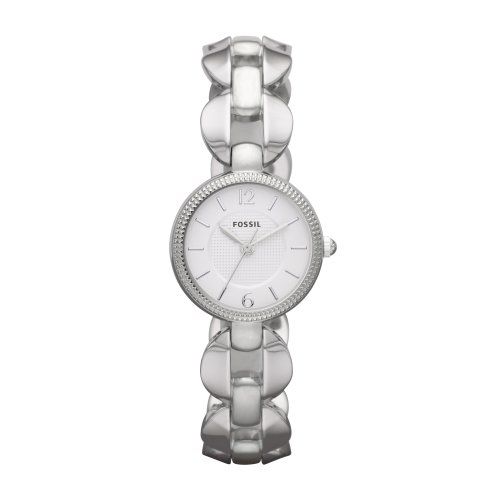 This ladies Fossil watch is made from polished stainless steel and features a white dial with hour baton markers and slender hands.