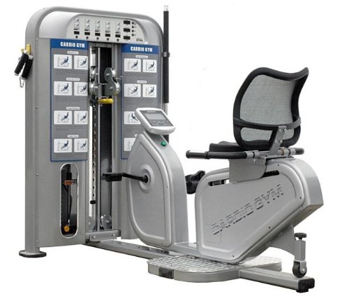 The CG5000's recumbent bike rotates to face forward or backward, allowing numerous integrated, simultaneous upper body workout routines. |