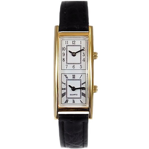 Ladies Gold Tone Dual Time Black Leather Strap Watch GOTW92 Reviews